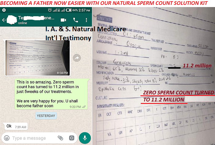 We will firstly treat that problem, after that  we will then start boosting your sperm count and you will become father straight away.