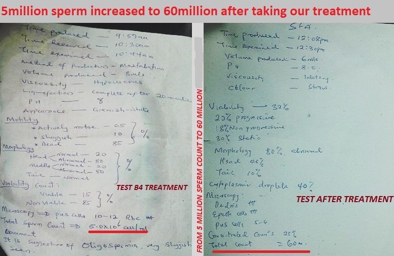 We will firstly treat that problem, after that we will then start boosting your sperm count and you will become father straight away.