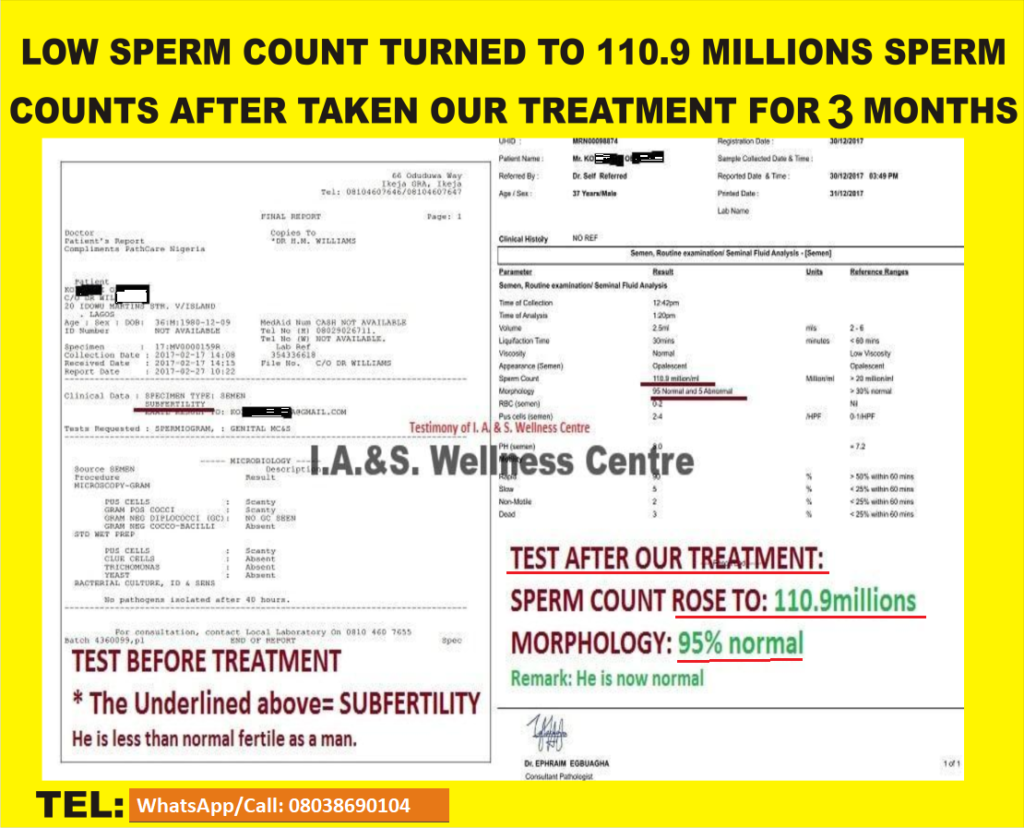 HOW WE CURE LOW SPERM COUNT NATURALLY IN I .A .& .S NATURAL MEDICARE CLINIC